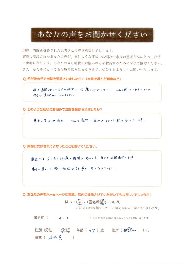 術中も術後もどんどん良くなる感覚が身についていったことに喜びを感じられる様になりました。