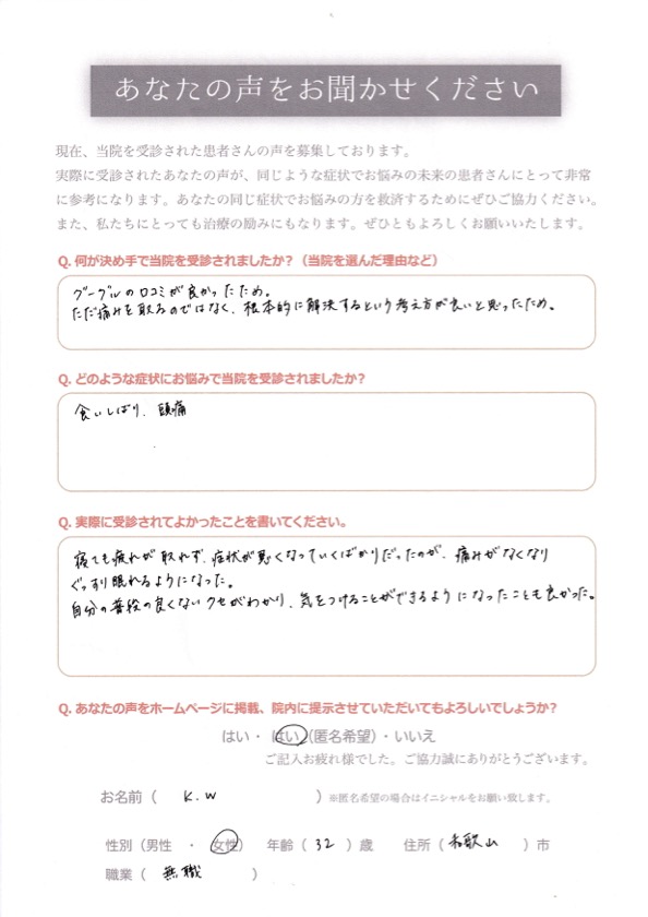 食いしばり、頭痛が良くなりぐっすり眠れるようになりました! – 泉南 阪南 和歌山 肩こり 腰痛|ストレス うつ病でお悩みなら久保整骨院